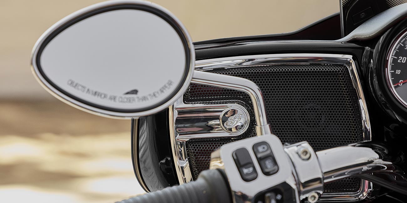 | 標準装備 | Apple CarPlay®を統合したRIDE COMMAND搭載7インチタッチスクリーン、電動フロントガラス、ドライビングライト、ハイウェイバー、合皮シート(ライダー/同乗者セパレートヒートコントロール)、グリップヒーター、アジャスタブルパッセンジャーフロアボード、36.2ガロン収納、リモコン付ハードサドルバッグ&トランク、ライディングモード選択可能、リアシリンダー停止、ABS、クルーズコントロール、キーレスイグニッション、AM/FM、Bluetooth®、USB、スマートフォン対応入力、ウェザーバンド付200Wオーディオシステム、12V充電ポート |